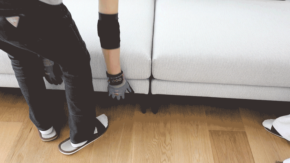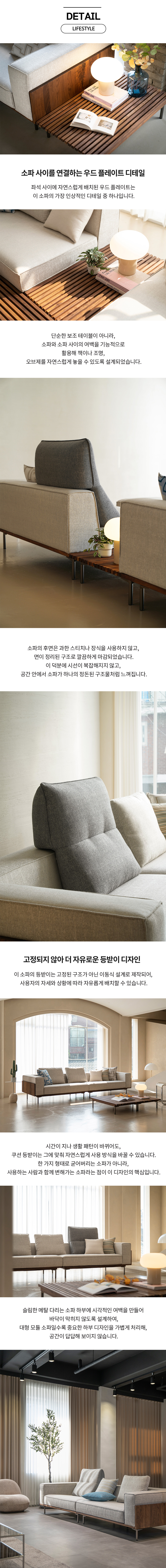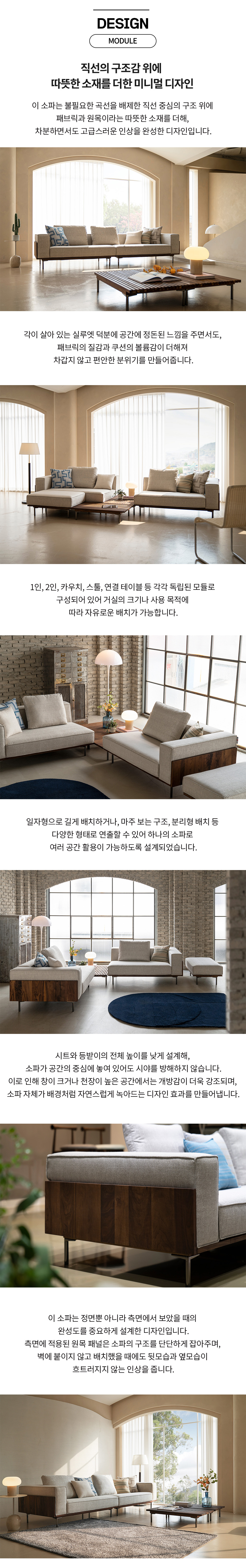 북미산 월넛 포인트가 돋보이는 4인 모듈 소파.
